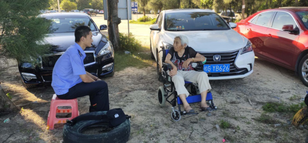 生活中的感动无处不在,有些事情虽然很小,但足以温暖人心。同样在沙滩上巡逻的我校学警徐跃跃同学看到一位行动不便的老人在沙滩上便走过去陪她聊天。只要心中有情,便用行动体现!
